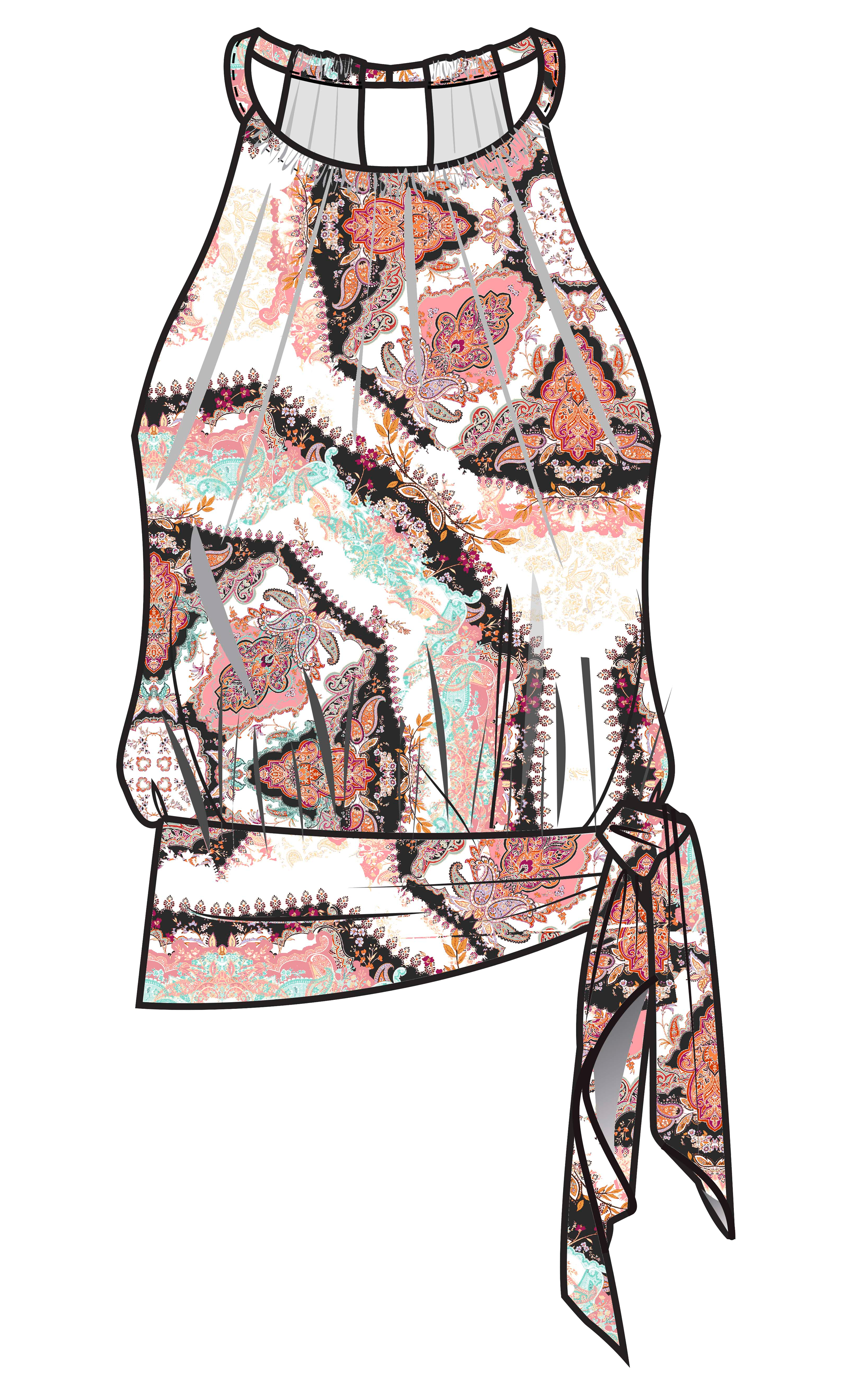 Inspired by the Amalfi coast we took inspiration from soft hues and mosaic prints. For the knit tops we utilized linen, cotton and other textured knits liek crepe to create easy and beautiful silhouettes to transport her.