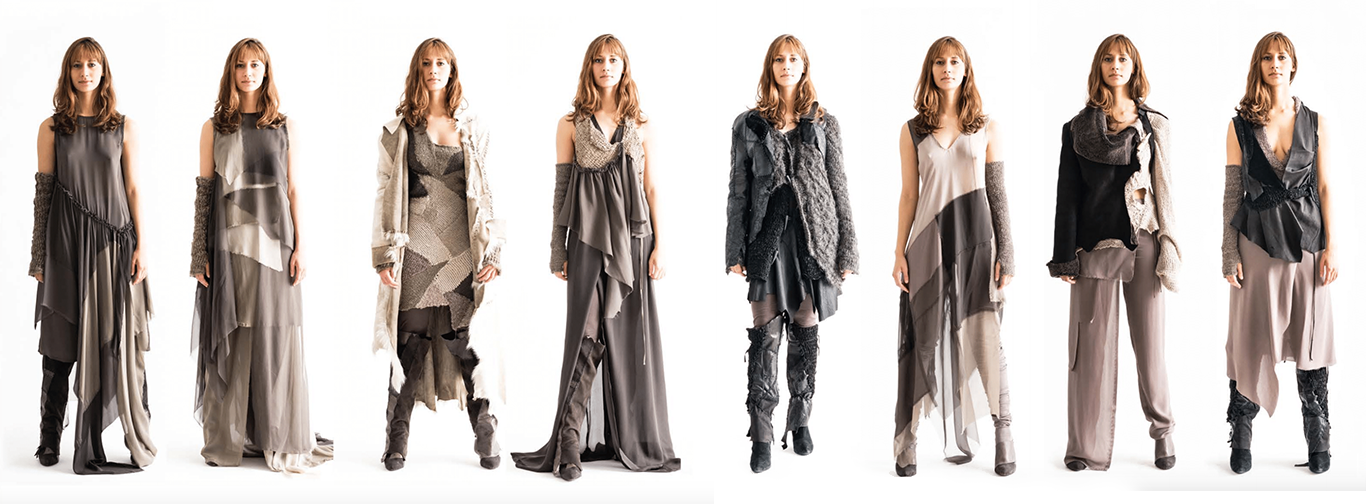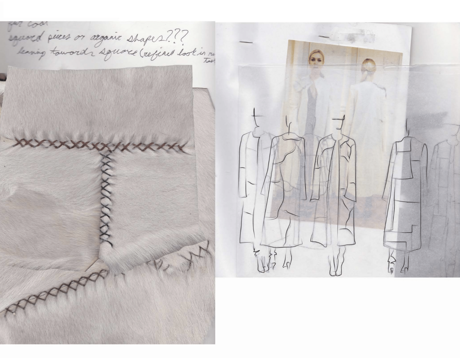 Process begins with trial and error. Searching for the techniques and juxtapositions between fluid and natural lines versus the straight and lean lines. Trying to capture the layers that nature creates and stacking them on the human body. Utilizing the natural curves and shaping them into their new shapes.